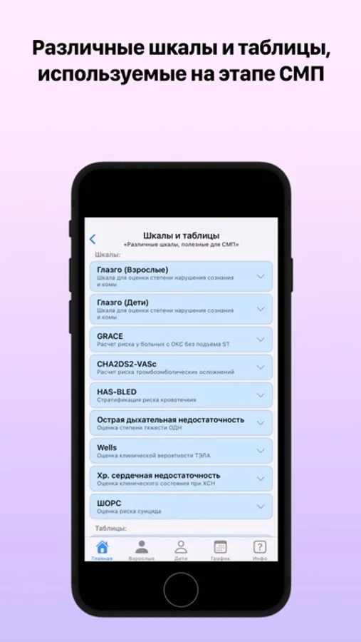 - Шкалы и Таблицы - множество шкал для быстрой оценки состояния пациента;