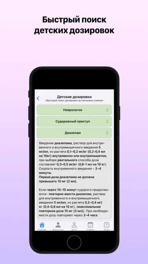 - Поиск детских дозировок - поиск необходимой информации в 3 клика;