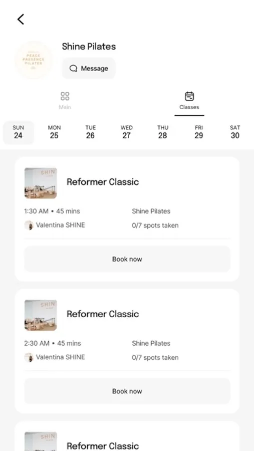 The Shine Pilates app makes it very easy for you to manage your Shine Pilates account, book into our classes and events and keep in touch with us. You can easily message us if you have a question or want to share something with them. You can also follow our public feed to see any announcements we make, promos we run, or content we share.