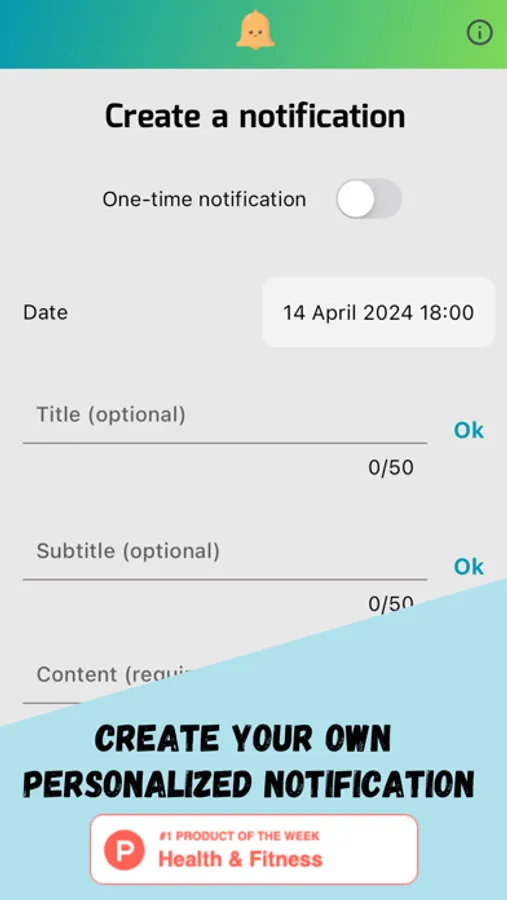 Choose the title, subtitle, and content of each notification for a completely tailor-made experience.