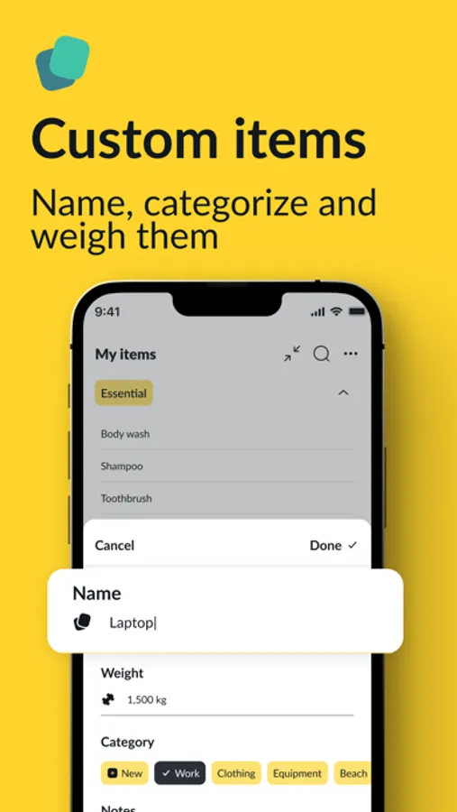 Name, categorize, and weigh items for efficient packing. Ideal for lightweight expeditions and luggage planning like a pro!