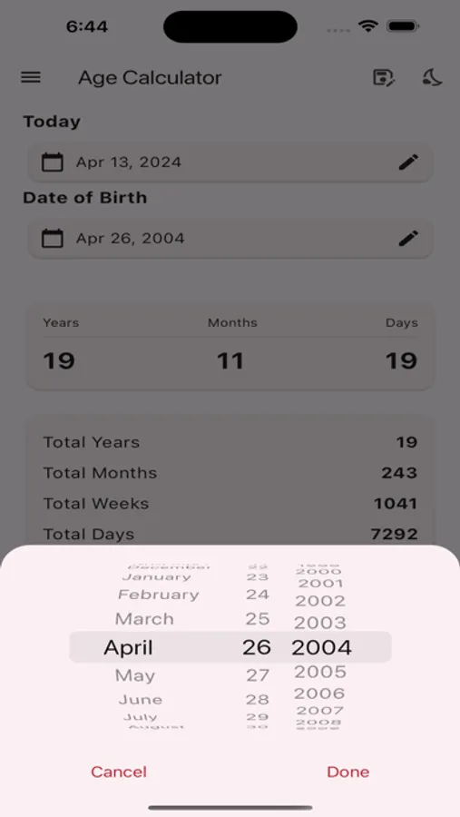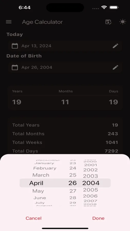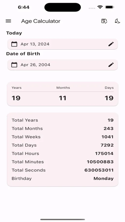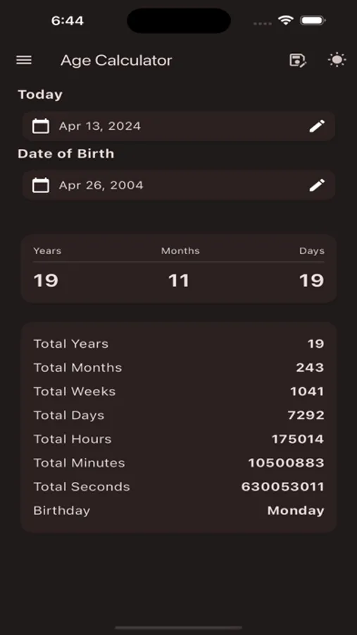 Discover your exact age with our user-friendly age calculator. Simply input your date of birth, and within seconds, you'll obtain your precise age. Whether you're curious about your age in years, months, or days, our age calculator provides accurate results, effortlessly. Try our offline age calculator now and unlock the mystery of your age with ease!