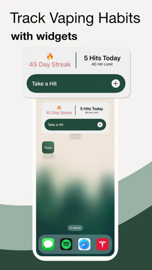 Easily track your vape hits by hitting a large button in the app, with Lock Screen or Home Screen widgets, or with shortcuts . Forgot to track for day? No problem! Cease makes it easy to go back and edit your vaping diary.