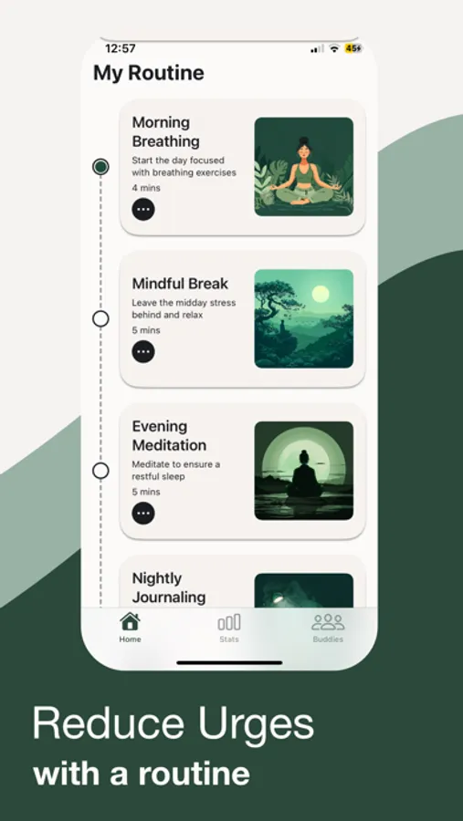 Nothing keeps a person accountable like a routine! Cease generates a 4-step daily routine with tasks including breathing exercises, nightly journaling, mindfulness breaks, and meditation. Complete these tasks to stay on track and reduce nicotine cravings.