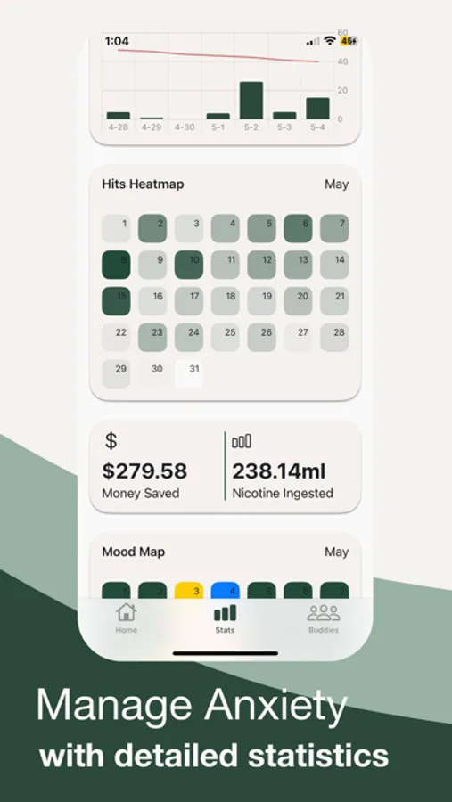 Cease makes it easy to stay on top of your goals. Visualize how far you've come using simple bar graphs, detailed statistics, and engaging heat maps.