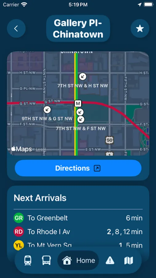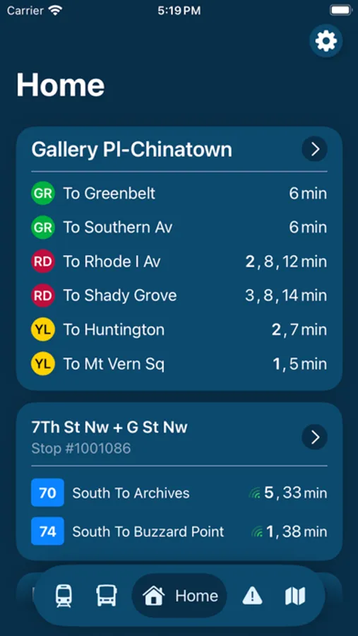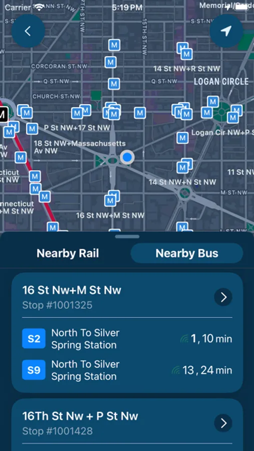 • Real-time arrival information for WMATA bus and rail stations that updates automatically.