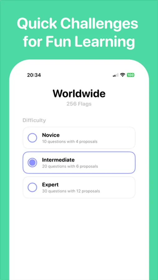 FlagsGuessr is a quiz game to test your knowledge of flags from around the world! With multiple difficulty levels, from novice to expert, FlagsGuessr offers a fun et quick way to learn and memorize flags. You can even choose to play by continents or with all flags. Challenge yourself with quick quizzes, track your progress, and become a flags expert!