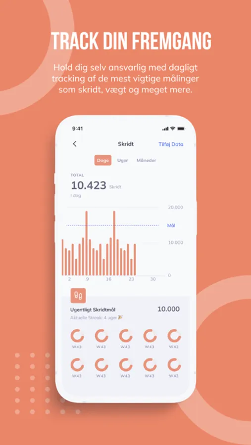 Appen integrerer med Apple Health, så du kan importere dine skridt og træninger direkte ind i appen.