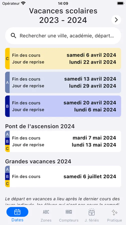 Vous ne vous rappelez jamais des dates des vacances scolaires ? De votre zone ? Des jours fériés ? Alors cette application est faites pour vous !
