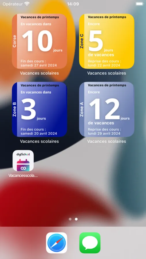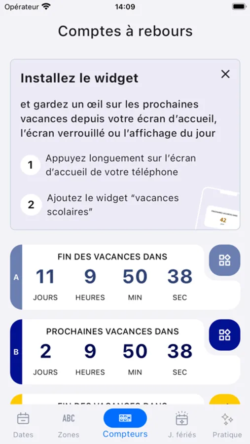 - Widget avec un compte à rebours pour visualiser rapidement les prochaines vacances