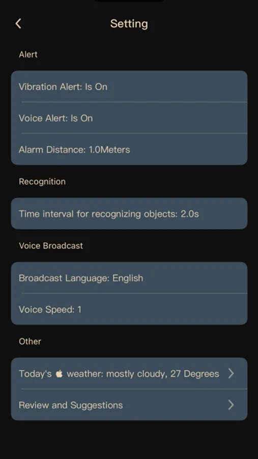 It can monitor the distance of obstacles ahead in real time. If the distance is too close, it will send out an audible alarm and vibration alarm. The user can customize whether to turn it on;