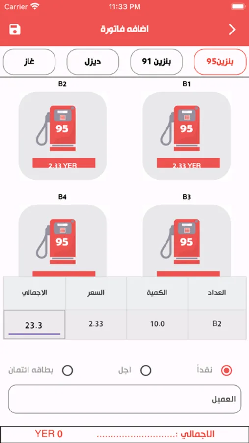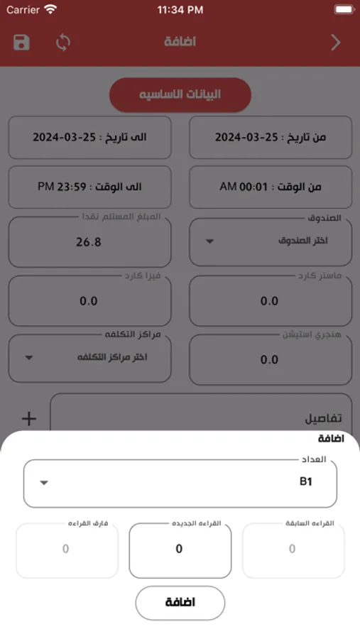 1-ادخال مبيعات العدادات (الطرمبات) مع تعدد طرق الدفع والعملات.