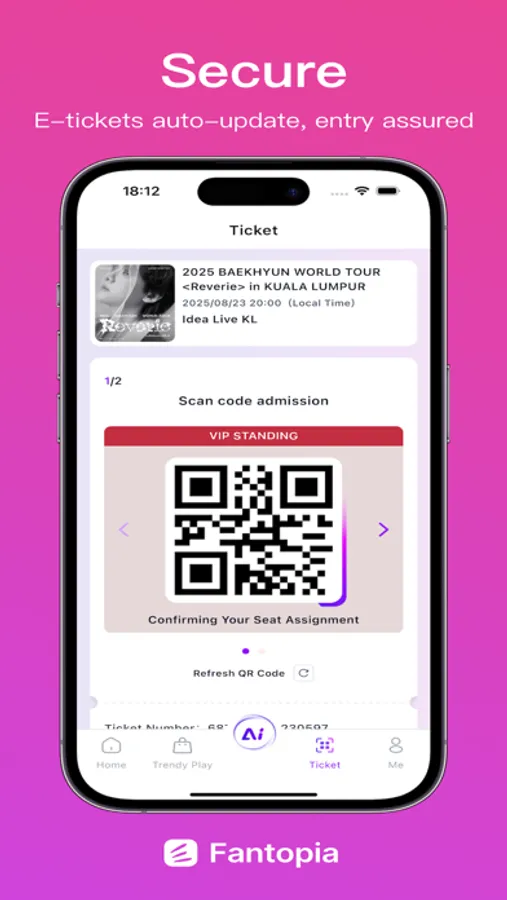 With Fantopia’s transfer feature and real-time QR code updates, you'll never have to worry about fake tickets.