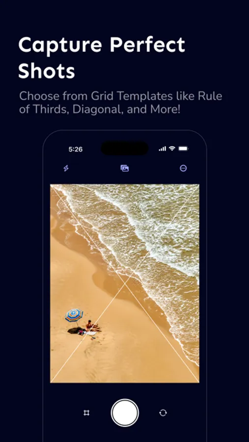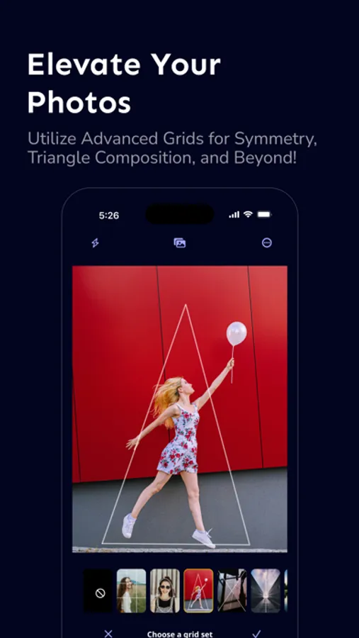 1. We offer various types of grid line options, such as rule of thirds, diagonals, symmetry grid, and more. Additionally, you can add customized grid lines as a pro feature.