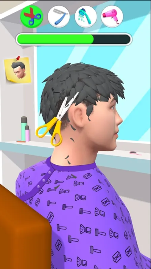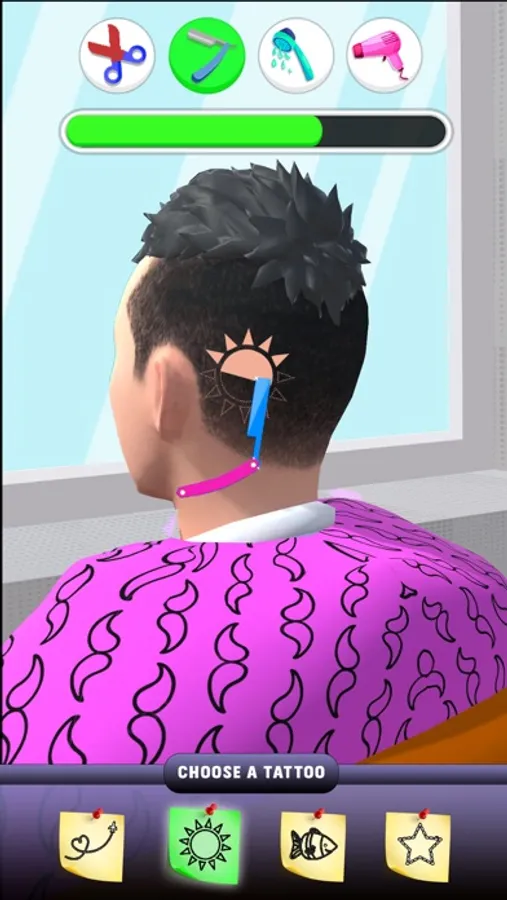 Play the Barber Hair Style Master where you can turn your dream hairstyles into reality. In this game, the barber will cut the hair of his clients, make different styles, apply hair colors, make tattoos, and will do all the customer requires. After the haircut, the barber will also wash the hair of his clients and dry it as well. After that, he will give a final touch by making a tattoo to give your hair a new look. Barber Hair Style Master Features:Easy-to-play new hair tattoo game A variety of cutting tools in barber sim Crazy hairstyle concepts in the hair cutting game.