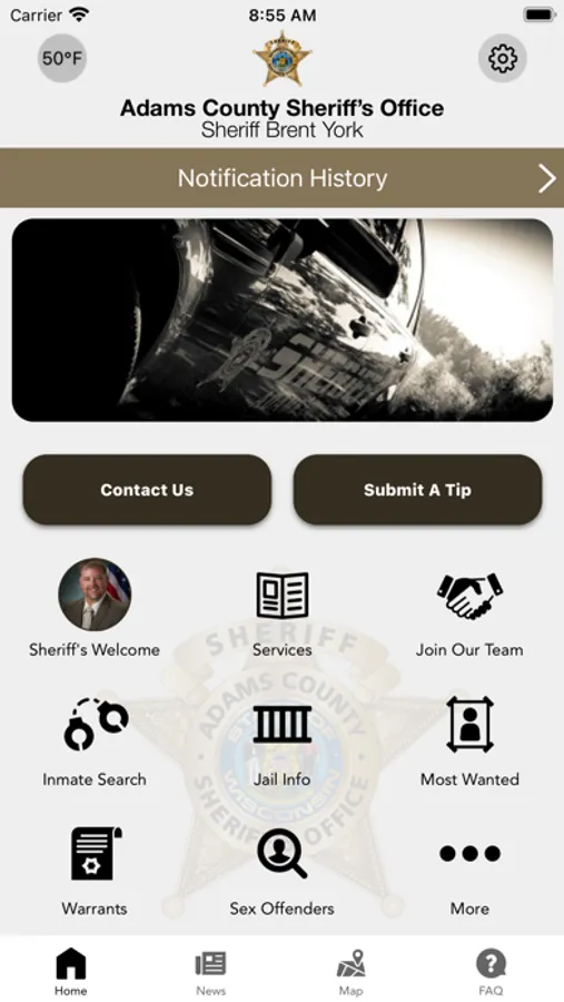 The Adams County Sheriff’s Office (WI) mobile application is an interactive app developed to help improve communication with area residents. The Adams County Sheriff App allows residents to connect with the Adams County Sheriff’s Office by reporting crimes, submitting tips, and other interactive features, as well as providing the community the latest public safety news and information.