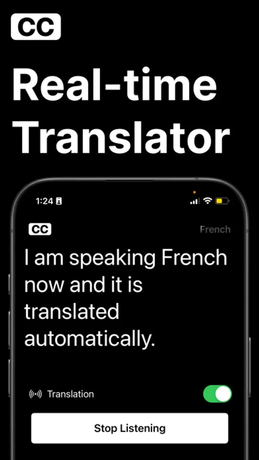 Welcome to Closed Captions (CC), your easy tool for seamless transcription and translation of your surroundings.