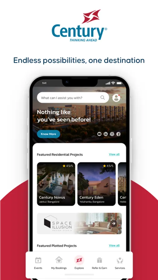 As a forward-thinking and dynamic brand, we are catalysts for transformation in the industry, shaping the landscape of a new and improved India that aligns perfectly with the evolving life and lifestyle needs of its people. With our app, we're taking our legacy to the next level by leveraging cutting-edge technology to elevate every aspect of your real estate journey.