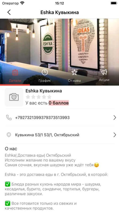 - Приложение дает возможность оплачивать балами, сохраняет историю заказа.