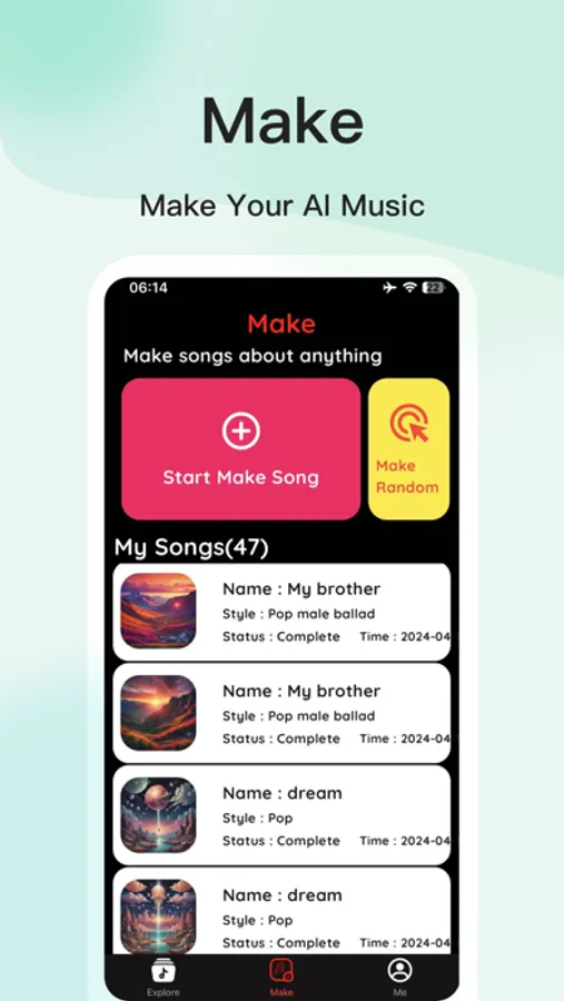 Welcome to AI Song, a groundbreaking music composition app that harnesses the power of advanced AI technology to bring endless musical and lyrical inspiration to you. Whether you're a professional musician, a hobbyist creator, or just someone eager to explore the infinite possibilities of music, AI Song is your perfect companion.