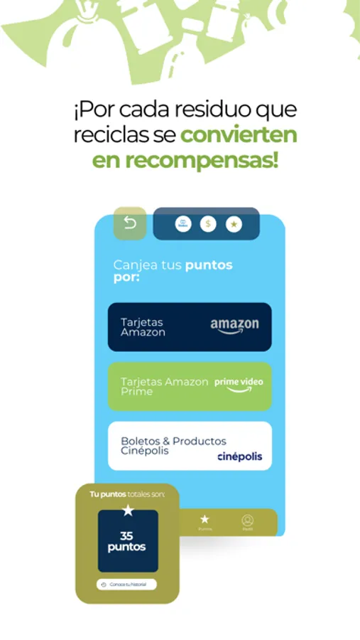 Con nuestra aplicación podrás tener acceso a nuestras maquinas de reciclado y podrás canjear tus puntos por grandes sorpresas