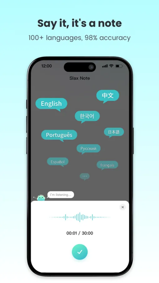 With Slax Note, recording your thoughts is as easy as a single tap. Just focus on what you want to say, and we'll take care of the rest. No more fumbling with complex recording procedures.