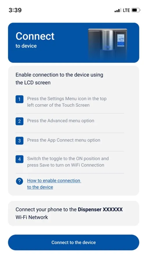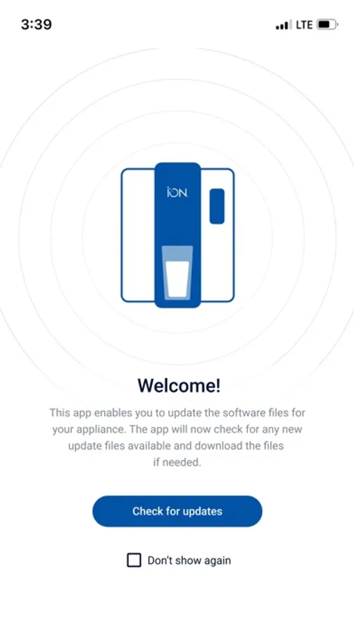ION is a software update utility app for the ION TS Series Drinking Water Appliance. It allows a user to download the latest operating software files for the appliance to their phone and then load it to the appliance via a point-to-point closed WiFi connection.