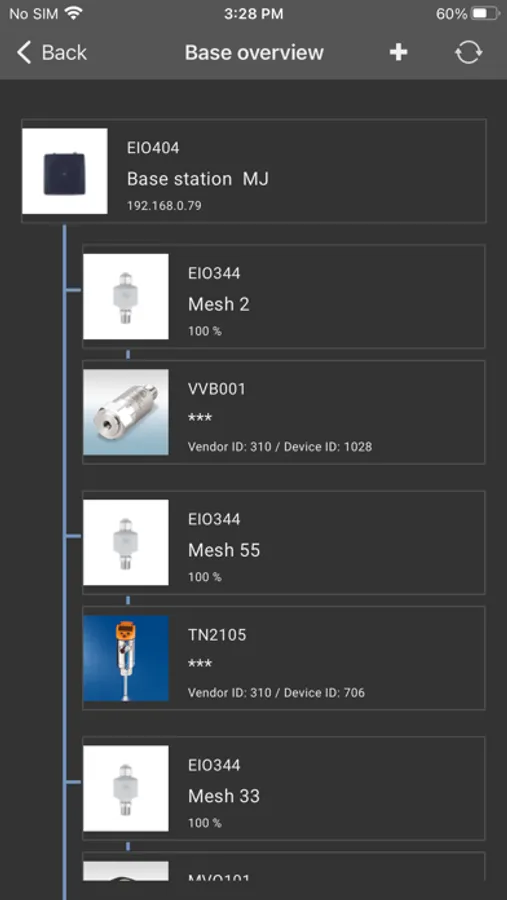 You can read and write IO-Link process data, device information and parameter from the IO-Link device. You communicate using the app with the IO-Link devices. Additionally you can configure the parameter of the Bluetooth Mesh-base station and the Bluetooth Mesh adapter with the app.