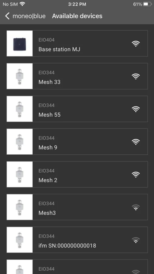 With the ifm moneo|blue app you can setup wireless the ifm Bluetooth Mesh-base station and Mesh adapter (art. no. EIO404 and EIO 344) and connect to IO-Link devices of arbitrary manufacturer.