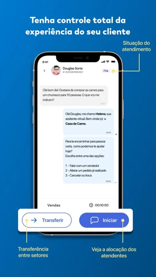 - Apenas um número de WhatsApp para vários atendentes e setores