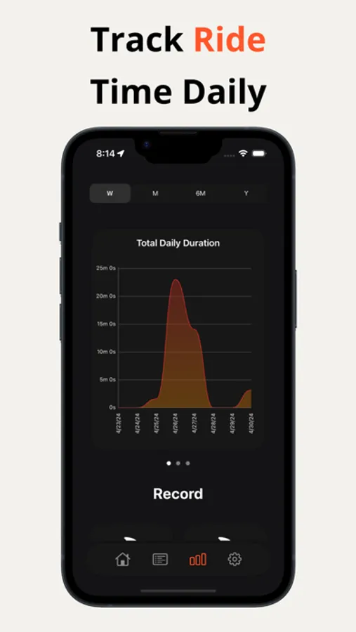 Track and Analyze Effortlessly Visualize your cycling habits with ease. Our intuitive graphs show your 'Total Daily Duration' , 'Total Daily Distance’ , 'Daily Average speed’ making it simple to monitor time spent riding and to follow your progress over time. Every session is an opportunity to learn more about your performance.