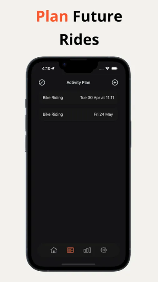 Plan Ahead Schedule your rides with the 'Activity Plan' feature, and never miss a cycling day. Stay organized and prepared for upcoming sessions, all within the app.