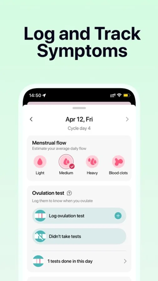 - Log and track different symptoms and moods in the menstrual calendar.