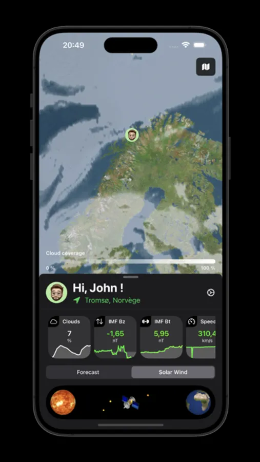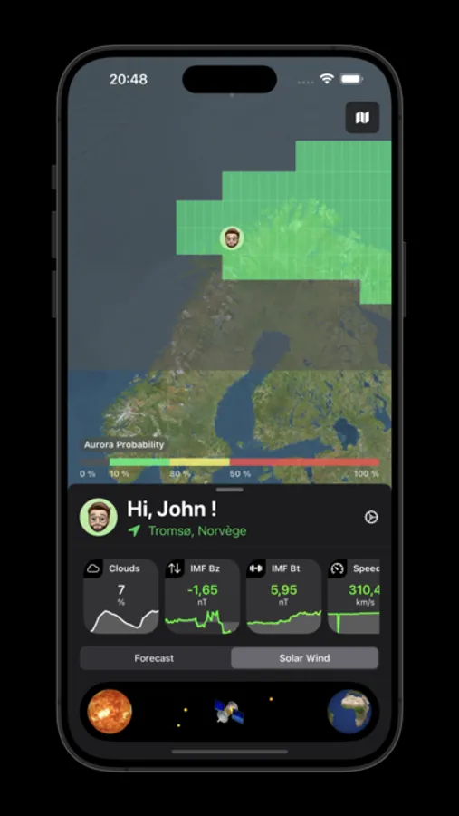 - Receive real-time aurora activity alerts and solar flare alerts.
