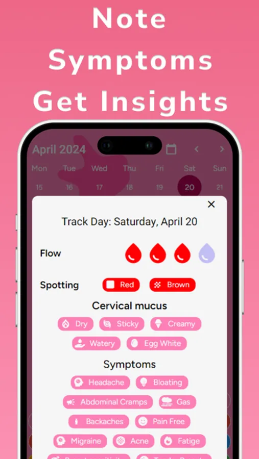 Detailed Tracking: Save essential period information like flow, intercourse, symptoms, moods, temperature, weight, medicine, PMS, and more.