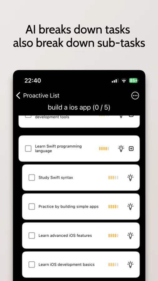 Just type in any task or plan you want to complete — Proactive List will analyze and break it down step-by-step, pairing each step with encouragement and smart prompts to help you finish with ease.