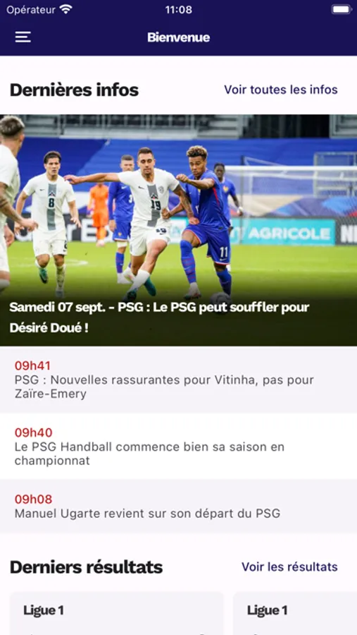 Follow all the latest news about Paris Saint-Germain in real time with PFN during the Ligue 1 championship and the Champions League, as well as during the transfer window. Instantly check the standings and all PSG results at a glance.