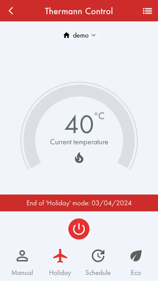 Thermann Control allows you to control the temperature of your water heaters remotely, via Smartphone or Tablet. You can minimize waste by heating the water only when necessary, for example while heading back home from work, after practicing sports or before arriving to the vacation house.