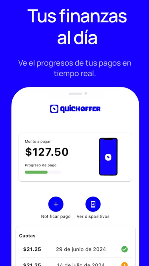 Además de ofrecerte una forma conveniente de adquirir nuevos dispositivos, QuickOffer te brinda la facilidad de monitorear tus pagos de cuotas directamente desde la aplicación. Nunca perderás de vista tus finanzas y podrás planificar tus gastos de manera inteligente.
