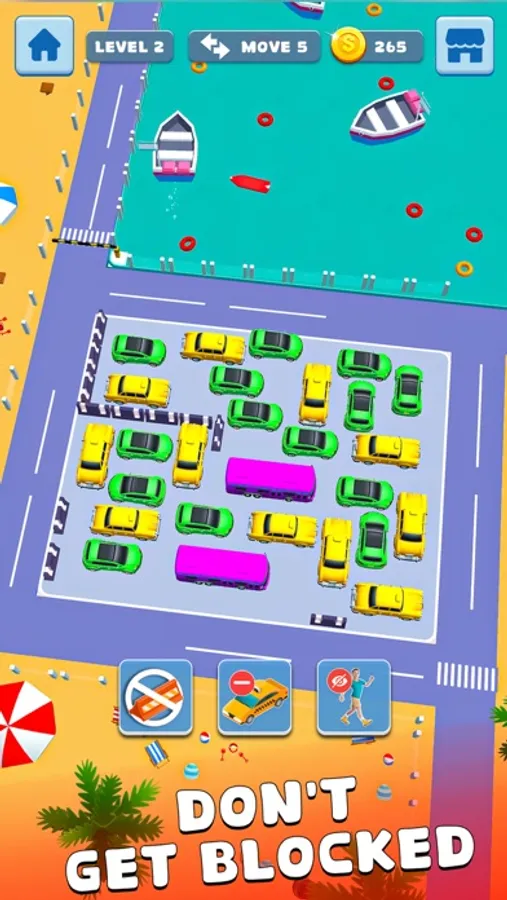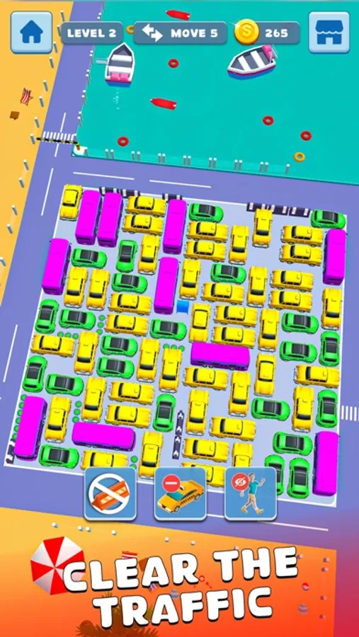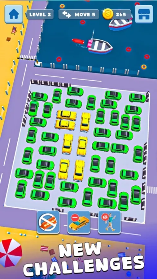 Easy to Play, Hard to Master: Slide and move cars with simple controls.