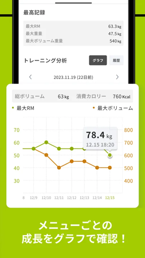 ・記録はグラフとなり、あなたの成長が可視化。