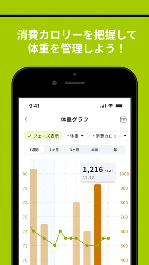 ・わかりやすいグラフで表示されるから体重管理も楽々。