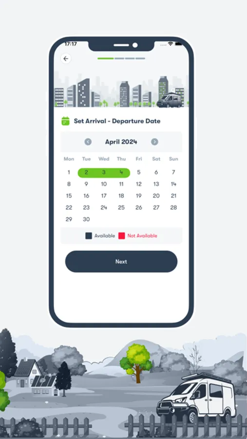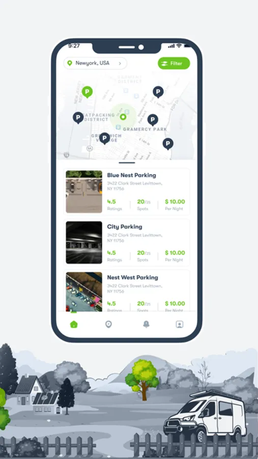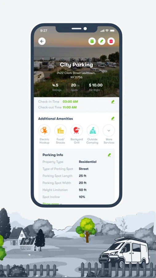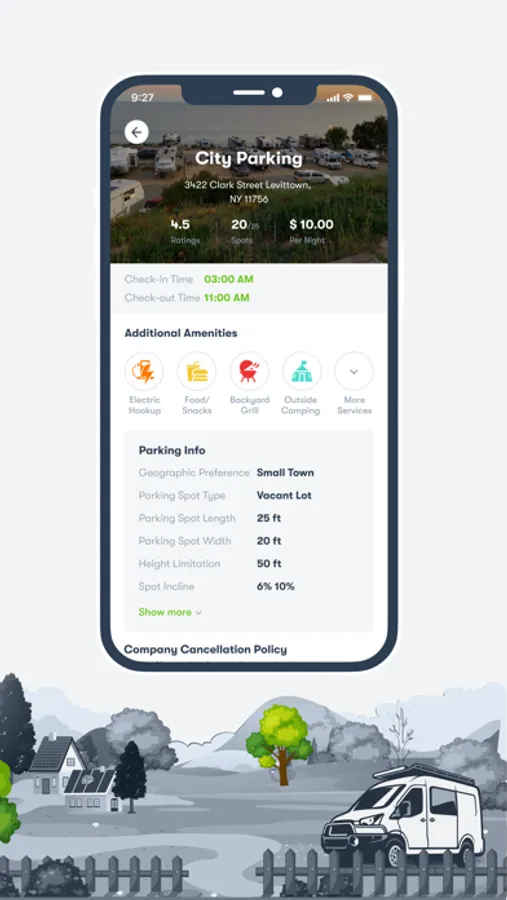 The app is an online marketplace facilitator for renting, searching, and booking RV parking.