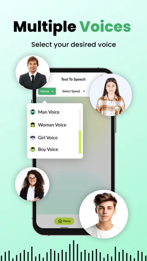 Our text to speech app offers you the option to select your desired voice from the available options. You can click on the drop-down voice option to choose any of its natural-sounding voices and personalize your listening experience. You can try out different voice options before settling on one with the play feature of this text to speech converter, which allows you to listen to the audio within the app after the completion of the conversion process.
