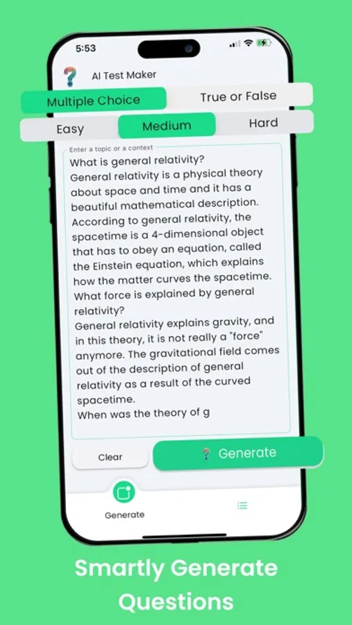 Turn any topic into an engaging quiz with Test Maker AI Questions & Answers – the ultimate learning app for students, educators, and lifelong learners! This innovative iOS app lets you create practical, interactive quizzes in seconds using the power of AI.