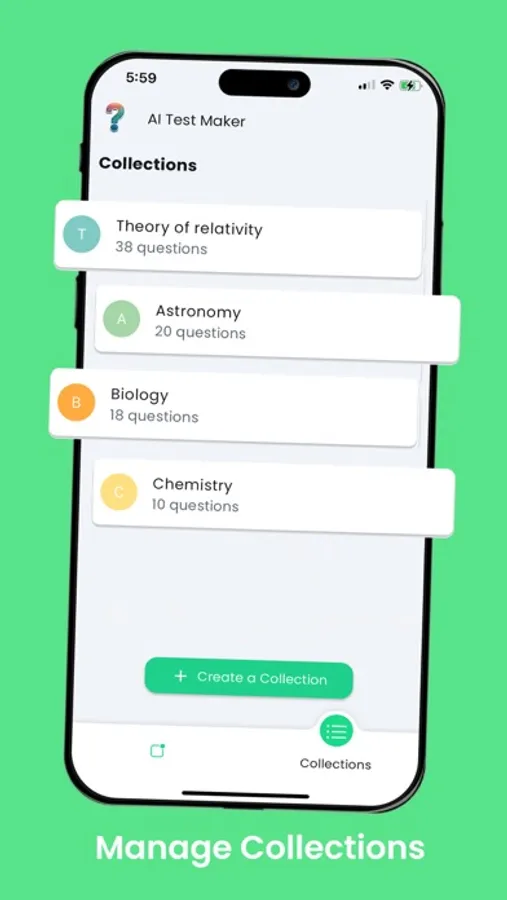 Create a Collection: Save AI-generated or manual questions to a personal bank.