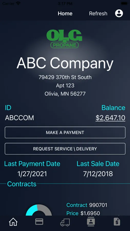 Information at your fingertips! This app gives you direct access to your account balance, location and contract information. It also gives you the ability to store and process payment and request service work and deliveries directly through the app.