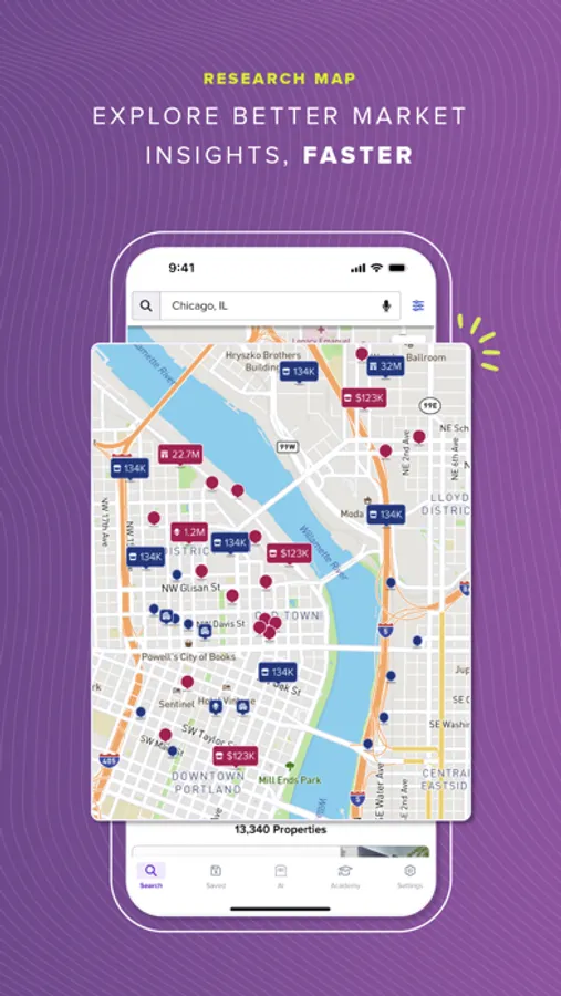 The app provides a dynamic research map that can be filtered and searched regionally by property and investment type to provide exactly what your investment criteria require. Drill down on a specific business district, or compare market trends nationwide.