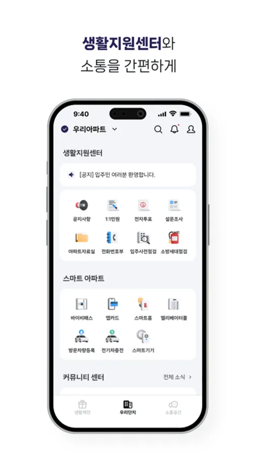 아파트의 중요한 소식을 언제 어디서나 쉽게 확인해요.