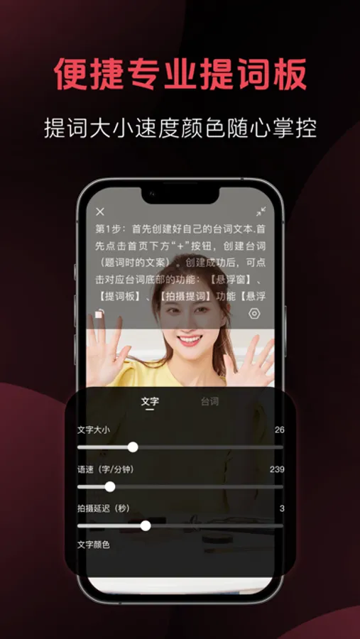 1.智能提词:用户可以将台词文本粘贴到应用中,应用将根据用户的语速自动调节滚动播放速度,确保用户在录制过程中能够自然、流畅地表达。
